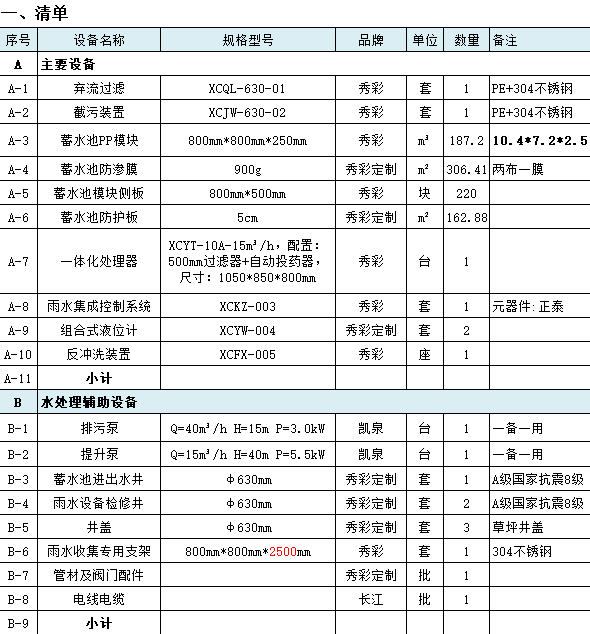項(xiàng)目材料明細(xì)如下: